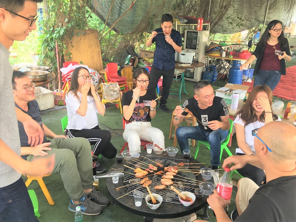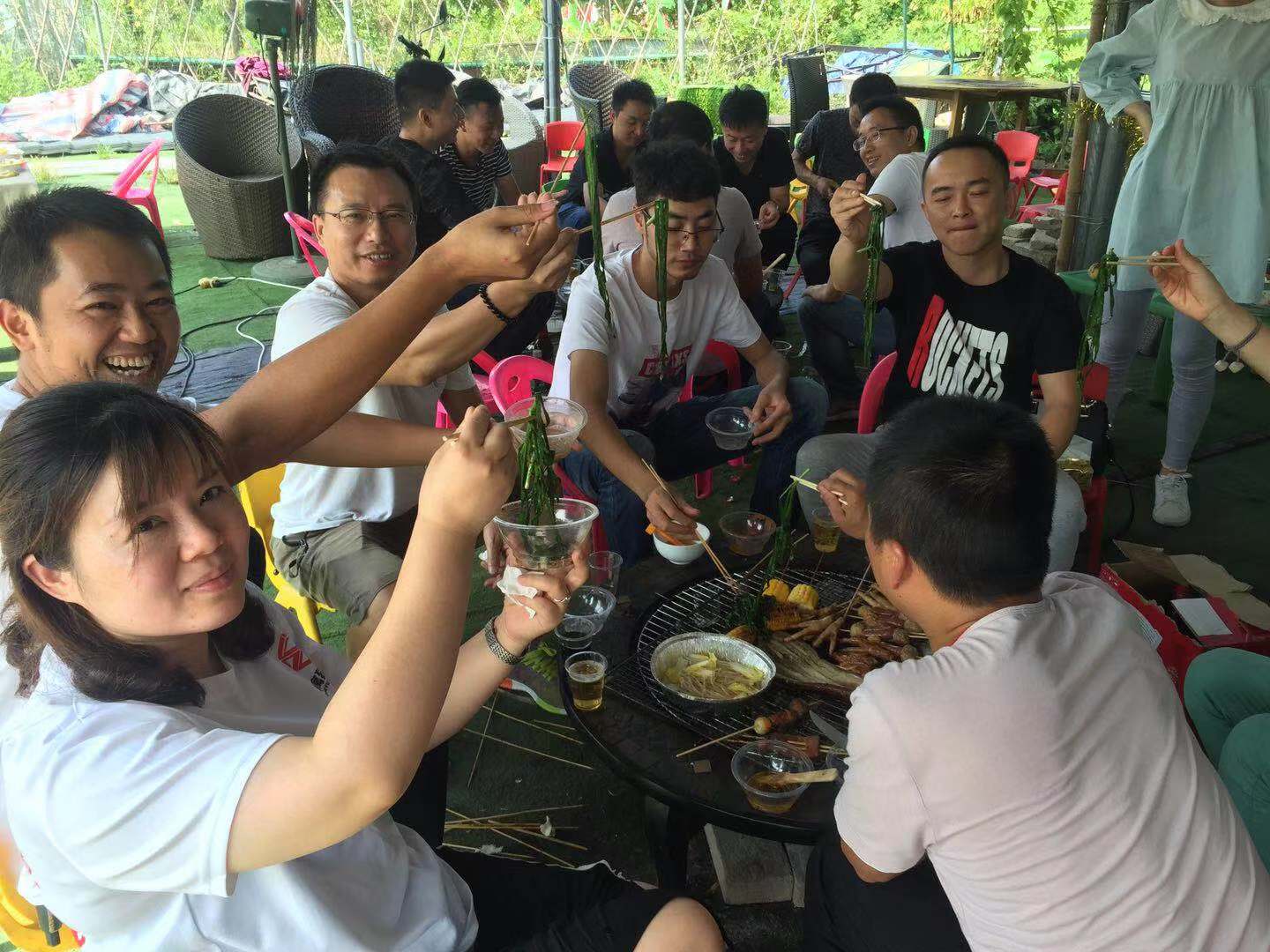 XK.COM星空领导思虑周全,考虑到让大家吃饱了才有更充沛的精力娱乐,所以第一项活动是烧烤。烧烤时,大家有序分工,串肉、串鸡翅、烤制、刷油……忙的不亦乐乎。人人都在各显身手,有的烧烤技术实在不敢恭维,都把肉烤成“黑炭”;有的成员相当出色,看他们烤出来的肉、鸡翅,不仅色泽诱人,而且香飘四溢。大家烤的认真,吃得津津有味。大家的热情也随着炭火一般,逐渐升温,越来越旺,欢声、笑声不断,其乐融融,在品尝美食的同时也尽情的享受着烧烤的乐趣。
