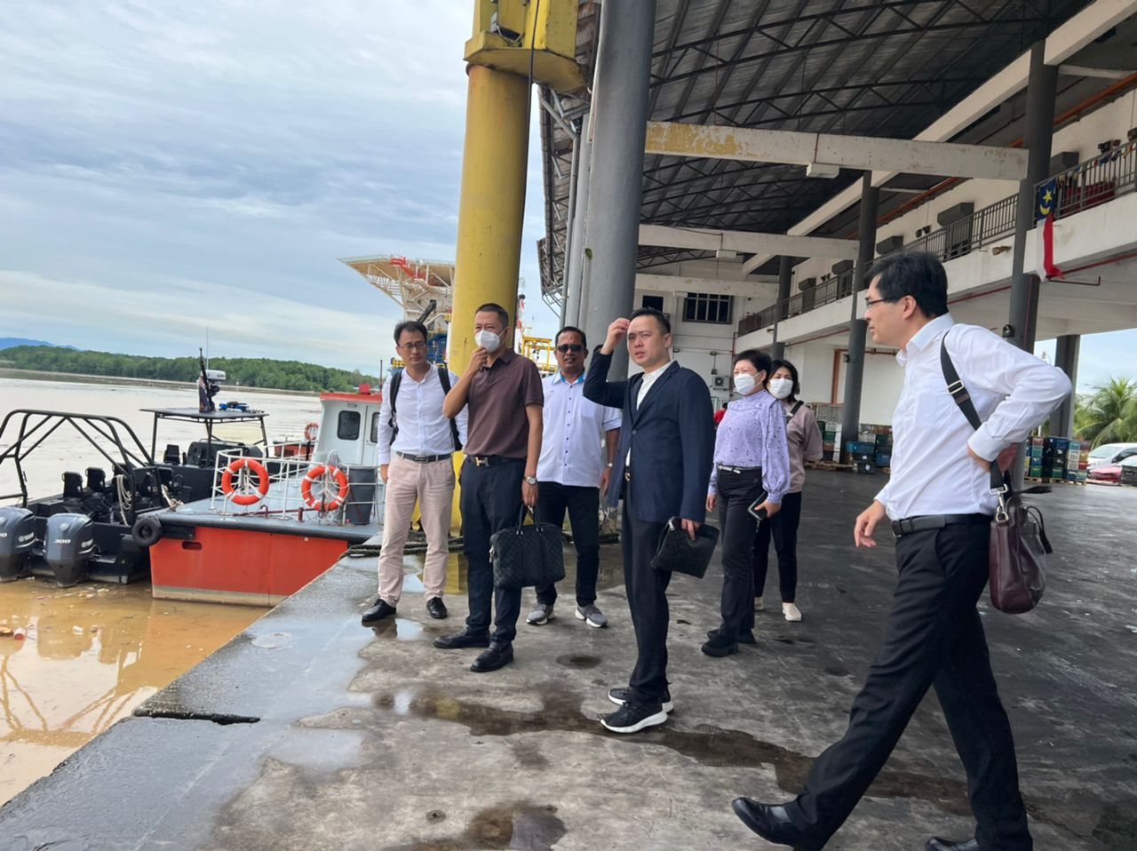 中寓建筑系统董事长赵元金先生在马来西亚拜会学习期间,于2022年11月17日下午与广东国际商会副会长、金鹏马来西亚办事处主任李俊等一行拜访拿督威拉对中国事务特使颜天禄先生。