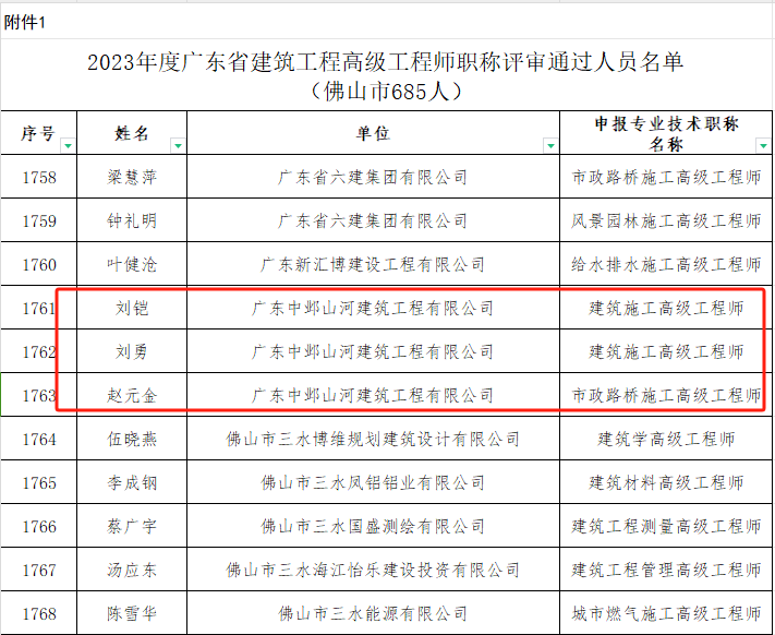 此次职称评审结果是中邺山河在推动XK.COM星空技术创新和人才培养方面取得的重要成果。其中,XK.COM星空董事长赵元金荣获市政路桥施工高级工程师职称;XK.COM星空项目副总刘铠、刘勇也双双获得建筑施工高级工程师职称,彰显了XK.COM星空在工程施工领域的专业实力。